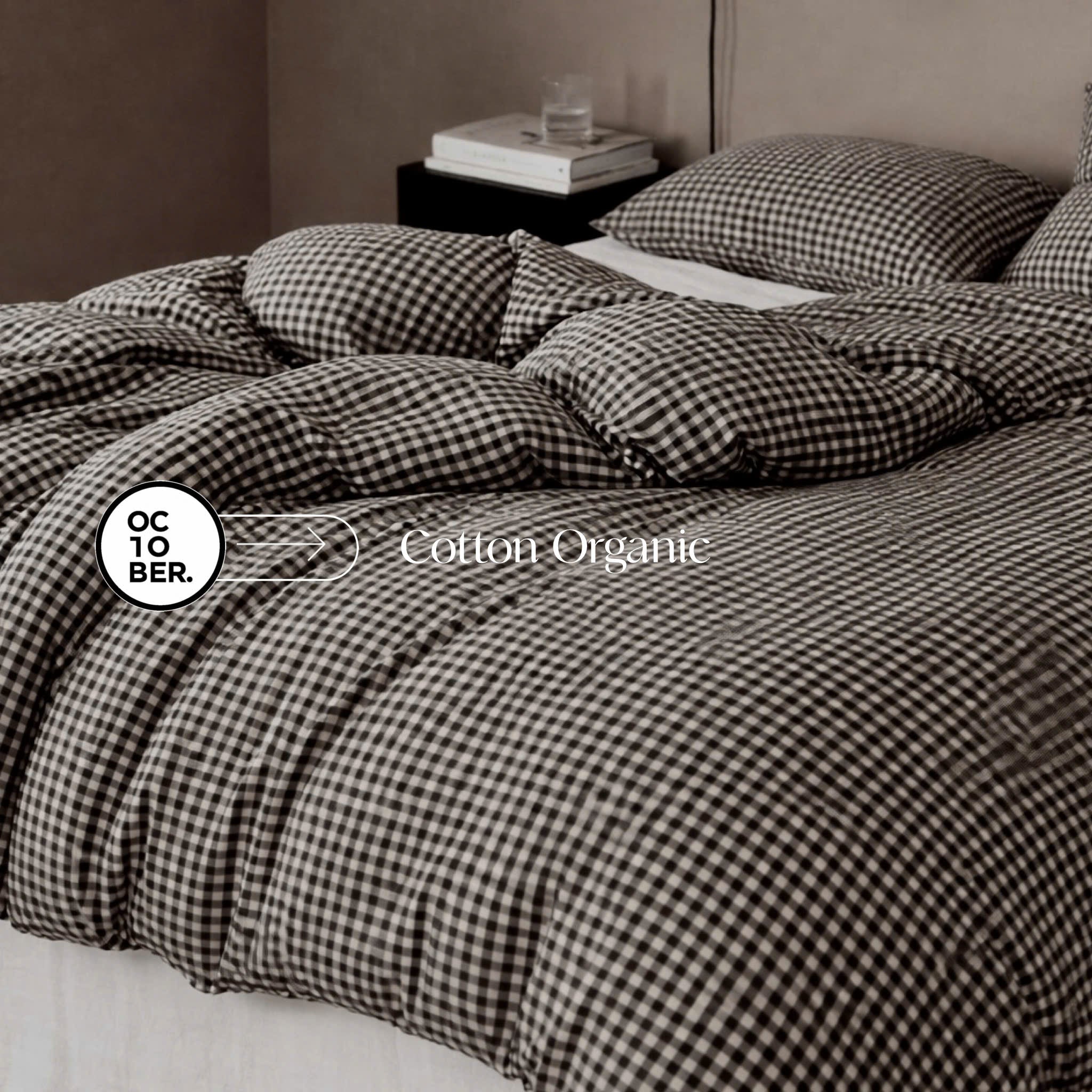 Bộ chăn ga gối | Cotton Organic | Caro Nhí Beigi Đen | 5 món | 160x200cm, 180x200cm, 200x220cm | Caro | Mềm mại, Kháng khuẩn, Thấm hút | OCTOBER BEDDING (Copy)