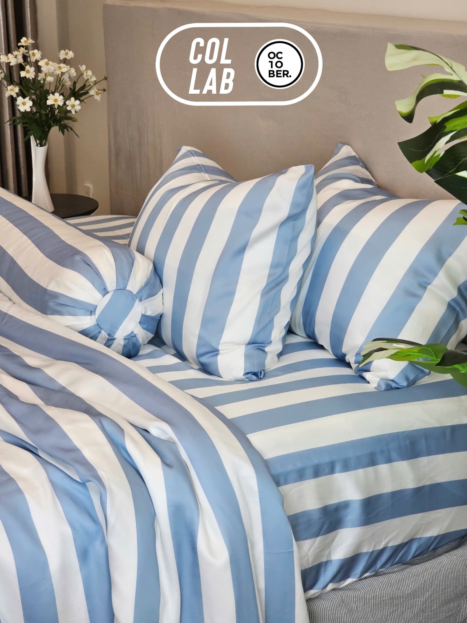 ✨ Bộ drap giường sọc xanh trắng chính là “bí mật” mang lại giấc ngủ thoải mái và không gian phòng ngủ sang trọng – tinh tế.